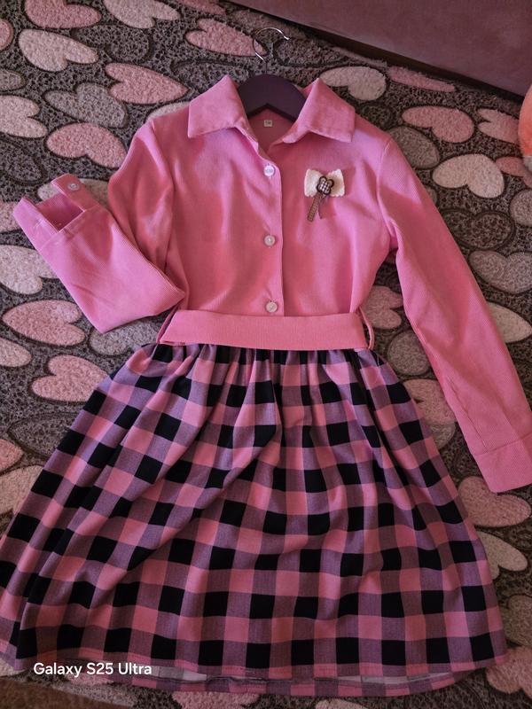 Сукня для дівчинки. Ефект рубашки та спідниці. Дуже вдале поєднання кольорів та принту. Додаю фото сукні на доньці.