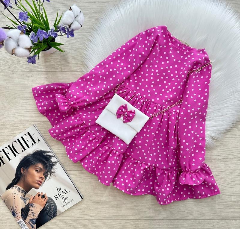 через кнопку купити тільки повна оплата!!! Неймовірна квіткова сукня 🌸🌸🌸 Повітряна, ніжна та стильна 🩷🩷🩷 Пишна спідниця 😍 В комплекті сумочка 👛 Позаду застібка ґудзик 👌🏻В рукавичках резиночка ☺️ Тканина: софт 💓 Виробник: Україна 🇺🇦 р.98-1шт ЗАМІРИ +/-1-2см!!! ▪р.98- довжина 52см/ рукав від плечового шва 38см / ПОГ 27см Д-арт: 0920