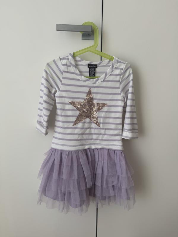 Плаття для дівчинки, дуже приємне до тіла з блискучою зіркою. Подовжений верх і пишна спідничка. Вдівали 2 рази.