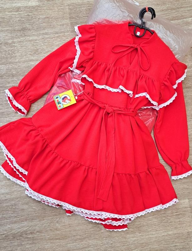 через кнопку купити тільки повна оплата!!! Ніжна сукня для дівчат В поясі резинка, поясок в комплекті. Тканина: креп-жатка, гарної якості. Колір-ЧЕРВОНИЙ. 140 довжина - 76см, напівобхват грудей - 40см, рукав від плеча - 48см. Мс