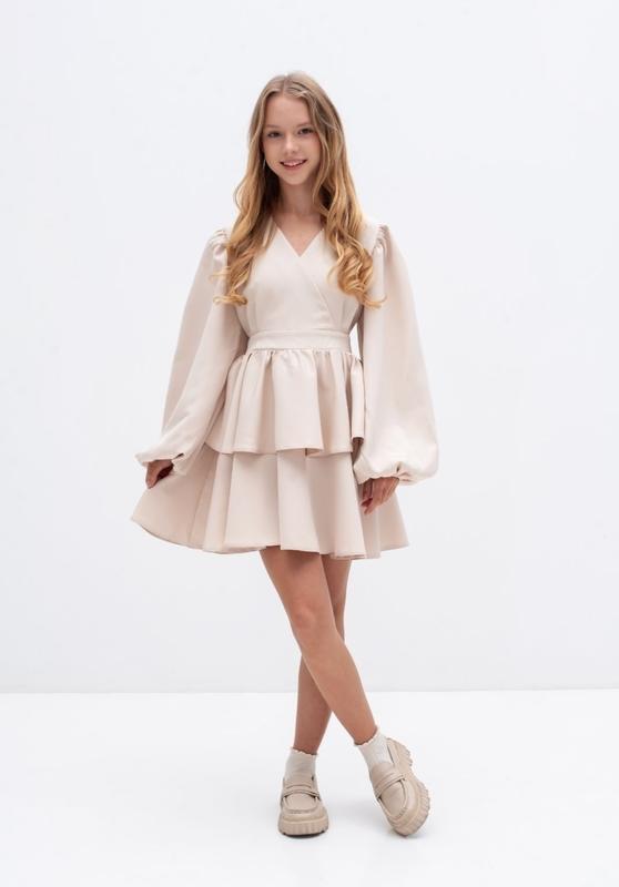 через кнопку купить только полная оплата!!! Сукня на запах Пояс пришит к платью, завязывается сзади. Тканина - костюмна. Цвет - карамель. 152 длина - 77см, полуобхват груди - 43см, рукав от плеча - 60см. 164 длина - 84см, полуобхват груди - 47см, рукав от плеча - 67см. Мс
