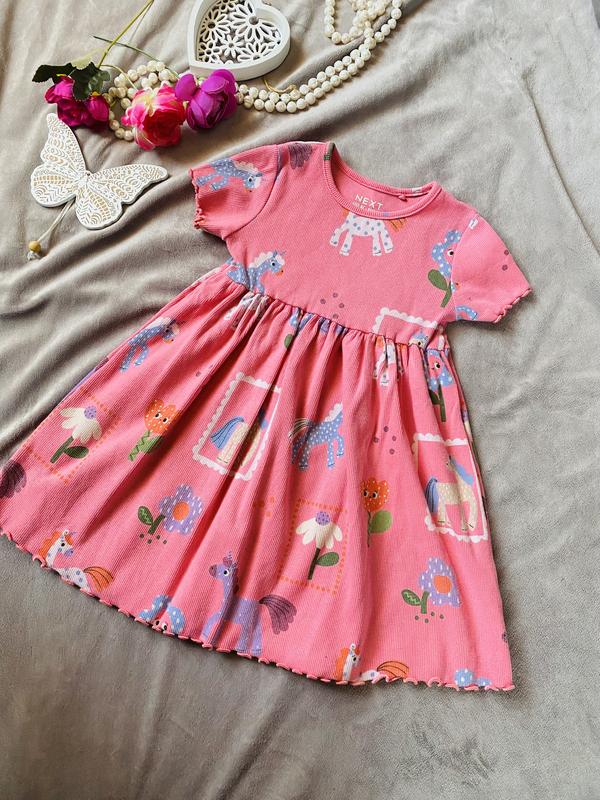 Гарненьке котонове платтячко Next, тканина в рубчик. Стан ідеальний. Розмір 98 (2-3 роки), але найкраще орієнтуватись на заміри. Довжина по спинці 49 см. ПОГ 26 см. Дод. фото та заміри на вимогу.