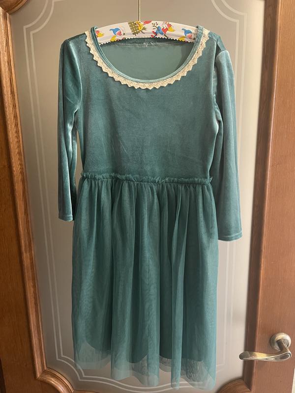 Довжина 76см Рукав 3/4 (39см) ПОГрудей 36см Одягалась 2рази Верх-велюр, низ -фатин + підкладка Зелений колір