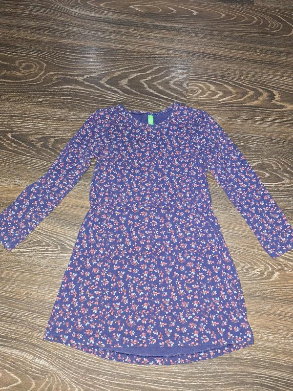 Детское платье United Colors of Benetton в цветочный принт Стильное и комфортное платье от известного итальянского бренда. Идеальный вариант для садика, прогулок или праздничных событий в прохладное время года. Основные характеристики: Бренд: United Colors of Benetton (оригінал). Цвет: Насыщенный темно-синий (базовый) с нежным розово-голубым цветочным принтом. Материал: мягкий и эластичный трикотаж (хлопок с добавлением эластана), приятный к телу. Фасон: Приталенный силуэт с отрезной талией и расклешенной юбкой. Длинный рукав. Преимущества: Натуральная ткань: позволяет коже «дышать». Износостойкость: качественный трикотаж Benetton хорошо держит форму и цвет после стирки. Универсальность: отлично сочетается с колготками любого цвета, кедами или туфельками. Состояние и размер: Размер: (92). Состояние: отличное (без пятен, дырок или катышек).
