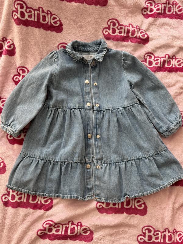Джинсова сукня в чудовому стані, колір блакитний. Загальний стан дуже гарний, із нюансів на одному рукаві вилізла кнопочка, вона є, але треба зафіксувати. І незначна зачіпка на рукаві, її взагалі не помітно Довжина 53 Пог32 якість джинсу дуже хороше
