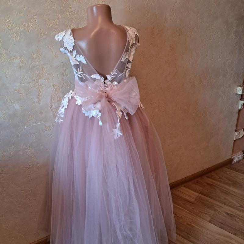 ПОГ-37-38,ПОТ-33, довжина 111см Продаю неймовірно ніжну та святкову сукню для дівчинки. Сукня виглядає дуже шляхетно завдяки поєднанню пудрово-рожевого низу та білосніжного мережива. Ідеально підійде для випускного, весілля або іншої урочистої події.