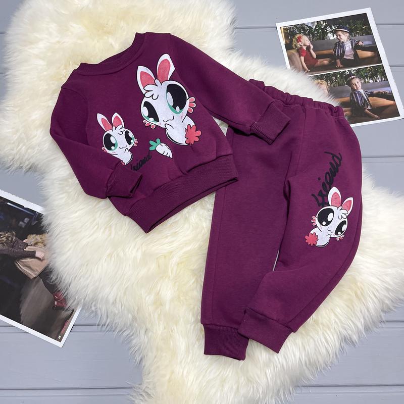 Костюм зайчики тепленький. Тринитка з начосом. Суперовий та якісний пошив. Малюнок - якісний накат. Виробник Туреччина. Заміри: 92 - довж.35 /рукав.30 /штнани довж. 51 /крок 32 98 - довж. 40/рукав. 32/штнани довж.55 /крок 35 104 - довж. 42/рукав. 33/штнани довж. 59/крок 39 110 - довж.42 /рукав. 37/штнани довж.62 /крок 42