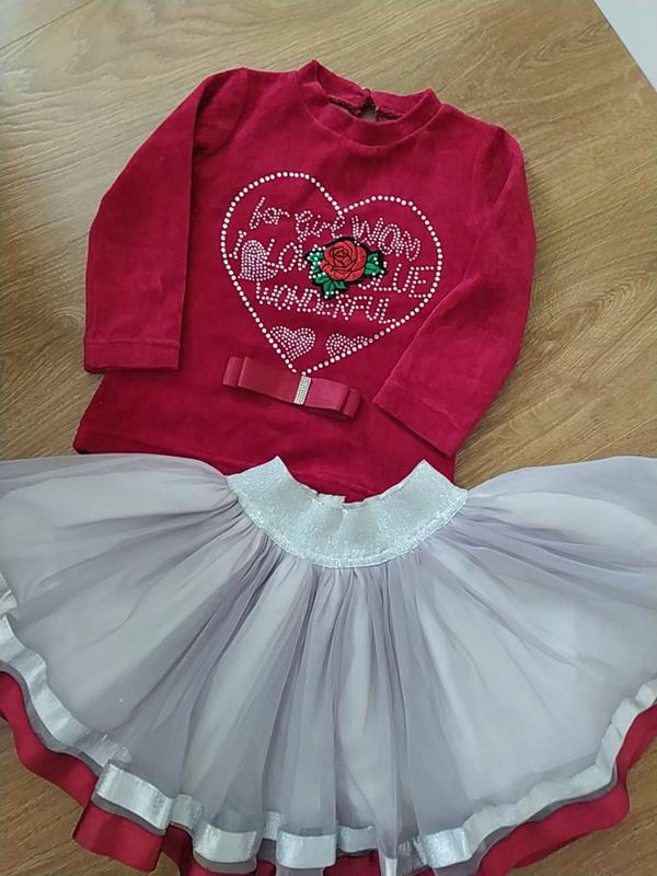 Костюм стан нового, одягнений на свято в садочку. Кофточка пог 28,5, довжина 37, рукав 28,5. спідничка дуже пишна, 4 підюпника, талія 21, добре тягнеться, довжина 29