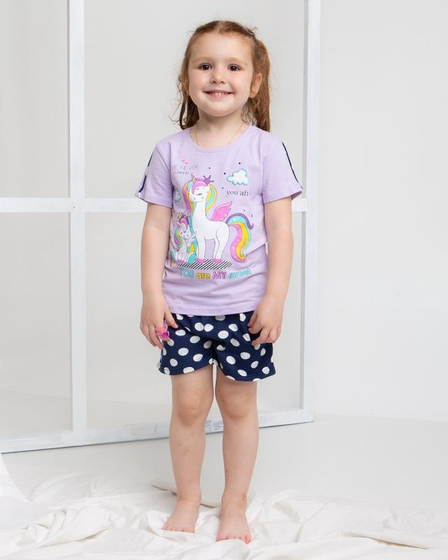 Комплект на дівчинку з шортиками в горох - єдиноріг