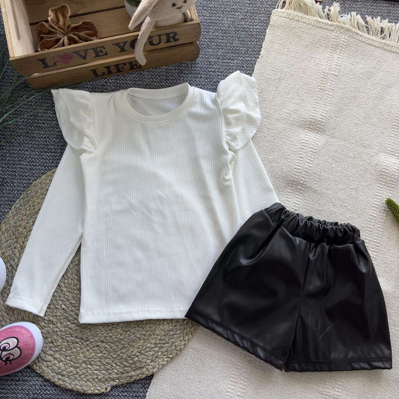 Неймовірний костюмчик – реглан та шорти! Якість – відмінна! Не скачується, не втрачає колір і форму при пранні! Реглан – мустанг рубчик! Шорти – екошкіра – добре тягнуться, широка резинка в поясі! Розміри: 92 – реглан довжина 37, рукав 33, шорти довжина 23, крок 6 поб 27 98 – 37/34 – 24/5/30 104 – 39/39 – 27/7/33 110 – 41/40 – 29/8/35