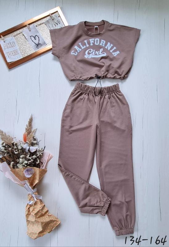 В НАЯВНОСТІ!!! НОВИНКА Летний костюмчик Тканина двухнитка В брюках есть кармашки Футболка стягивается РАЗМЕРЫ ПОЛНОМЕРНЫЕ 134(2 шт)-длина футболки 33,пог 44,длина брюк 80, крок 60,пояс 25, поб 45 140(1 шт)-длина футболки 35, пог 46,длина брюк 82, крок 62,пояс 25, поб 46 146(2 шт)-длина футболки 38, пог 47,длина брюк 87, крок 65,пояс 26,поб 48 152(1 шт)-длина футболки 41,пог 49,длина брюк 89, крок 66,пояс 26, поб 48 158(1 шт)-длина футболки 43, пог 50,длина брюк 92, крок 68,пояс 26,поб 52 164(2 шт)-длина футболки 45, пог 52,длина брюк 96,ша 72,пояс 29, поб 54 +-2 см
