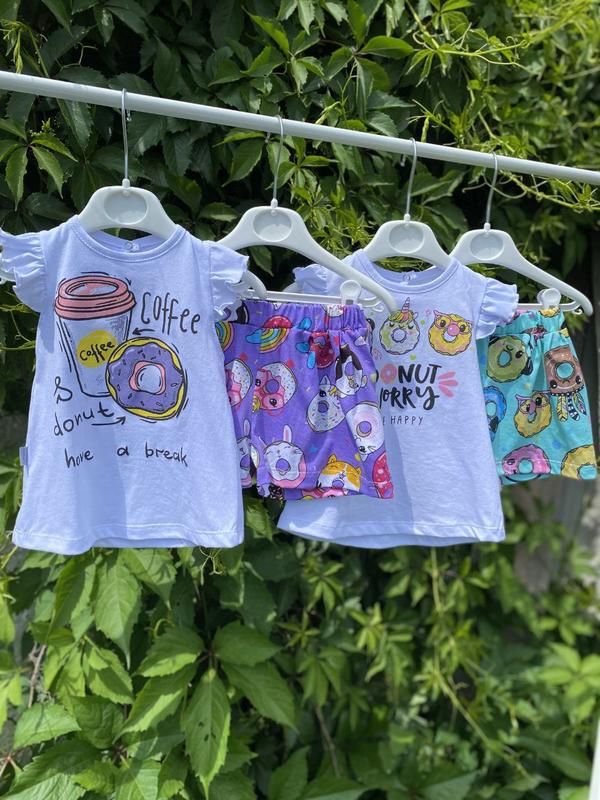 Солоденькі пончики, для маленьких красунь🩷 Яскраві комплекти на літо🔥 Гарна якісь, легка, дихаюча тканина кулір та оригінальний крій - це те, що робить данину модель зручною та надзвичайно привабливою😍 Прогулянки завжди будуть комфортними та наповнені яскравими кольорами 🌈 Розміри 86,98,110,122