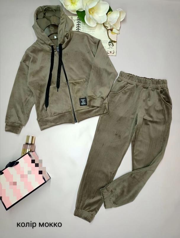 Спортивний костюм тканина королівський велюр 🍂Кофта на блискавці з кишенями та капюшоном штани під резинку,є кишені 🍂 В живу супер 😍 розмір/довж.світшота/пог/рукав від горловини/довж.штанів/крок/пот/поб похибка 📌128(1 шт)-46/41/51/73/53/24 📌134(1 шт)-46/41/52/78/56/24 📌140(1 шт)-48/42/55/81/60/25 📌146(1 шт)-49/43/57/86/64/25 📌152(1 шт)-51/44/59/90/67/27
