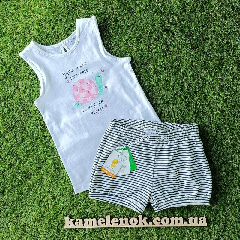 Комплект на дівчинку OVS Італія Тканина: бавовна, еластан Розмір 2,5-3 роки 98 см 📐майка: - довжина 42 см, напівобхват грудей 28 см 📐шорти: -довжина 22 см, пояс 24 см