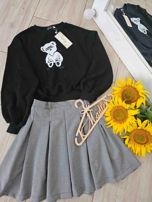 Костюм " Джулиянная" худи-петля манжеты и горловина-ребряная юбочка гусиная лапка супер качества сбоку на молнии по спинке резинка для регулировки талии Оверсайз Хорошее качество Цена 1070 грн Рост 140-146-2шт 146-152-2шт 152-158-2шт 158-164-2шт 164-170-2шт