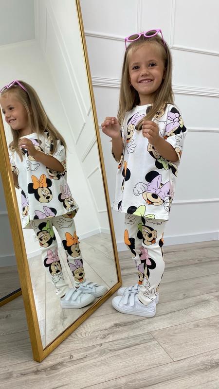 🌸В наявності гарненький костюмчик. 🌸Хлопкова футболочка та лосінки у рубчик, малюнок накат. 🌸Виробник Туреччина . Мірялась одна ростовка, можуть бути похибки. ✅ 18-24(92)- довж футб 40 шир 32 довж лос 49 крок 31-1 шт ✅2-3(98)- довж футб 42 шир 34 довж лос 52 крок 35- 4 шт ✅3-4(104)- довж футб 44 шир 35 довж лос 55 крок 35 -1 шт ✅4-5(110)- довж футб 45 шир 37 довж лос 59 крок 38- 2 шт ✅5-6(116)- довж футб 48 шир 38 довж лос 63 крок 42 -2 шт и