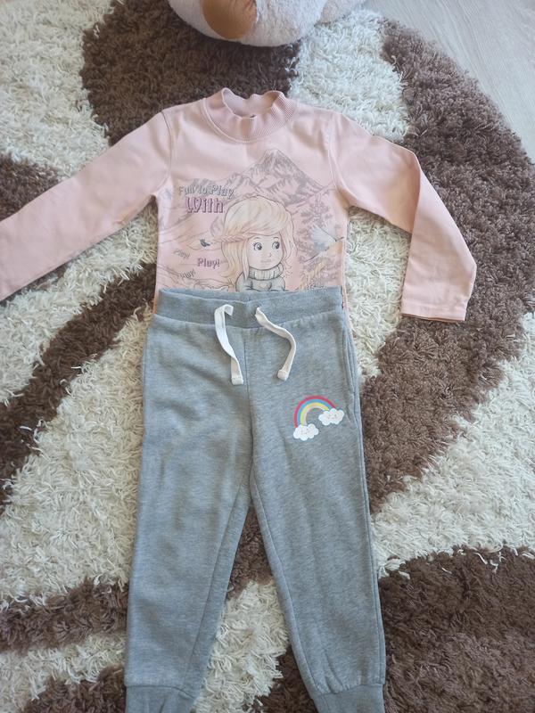 Теплые штанишки на манжетах длина 60см,ширина полуобх. 33см,пояс полуобхват.29 и сквозолазка длина 40см,рукав от плеча 39см, для девочки.Все хорошо тянется.