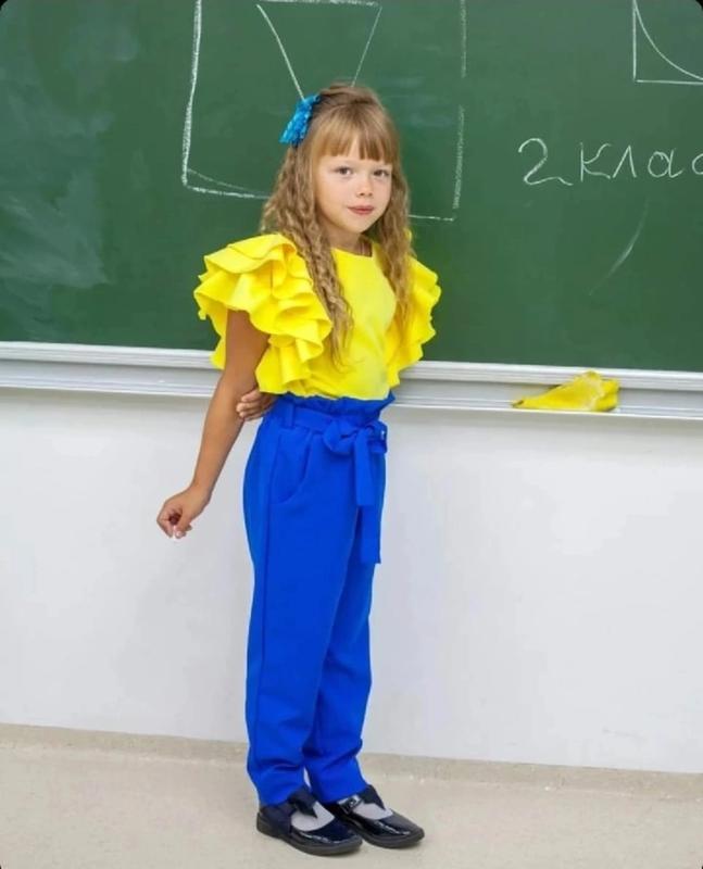 Під замовлення, відшив 1-5 роб. дня Неймовірно гарний костюм❗️ РЕКОМЕНДУЄМО ‼️ КЛІЄНТИ ЗАВЖДИ ЗАДОВОЛЕНІ🤗 В штанях є кишеньки, талія трохи завищена, на резинці, є пояс. Блуза позаду на блискавці. 💙Тканина: костюмка гарної якості. Заміри: +-1-2см 🔹р.116 - довжина блузи 39,5см / ОГ 62см / довжина брюк по боковому шву 70см / крок 49см / обхват талії 49см 🔹р.122 - довжина блузи 41см / ОГ 66см / довжина брюк по боковому шву 75см / крок 53/ обхват талії 49см 🔹р.128 - довжина блузи 42см / ОГ 70см / довжина брюк по боковому шву 79см / крок 57 см / обхват талії 49см 🔹р.134 - довжина блузи 42см / ОГ 72см / довжина брюк по боковому шву 84см / крок 61см / обхват талії 50см 🔹р.140 - довжина блузи 44см / ОГ 73см / довжина брюк по боковому шву 87см / крок 63см / обхват талії 50см 🔹р.146 - довжина блузи 46см / ОГ 74см / довжина брюк по боковому шву 91см / крок 67см / обхват талії 52см 🔹р.152 - довжина блузи 49см / ОГ 80см / довжина брюк по боковому шву 95см / крок 70см / обхват талії 54см 🔹р.158 - довжина блузи 50см / ОГ 82см / довжина брюк по боковому шву 98см / крок 73см / обхват талії 60см 🔹р.164 - довжина блузи 55см / ОГ 88см / довжина брюк по боковому шву 101см / крок 76см / обхват талії 60см 👉Безпечної оплати немає Кнопку КУПИТИ не тисніть, до уточнення деталей 🚚Нова пошта, є наложка з передоплатою 🚛 Укрпошта- +5грн пакування По оплаті і доставці уточнюйте додатково, до купівлі! Повернення немає, робіть свій вибір обдуманно. Оглядайте товар у відділенні, скарги з дому не розглядаються! Дякую що дочитали😊💙💛 ом