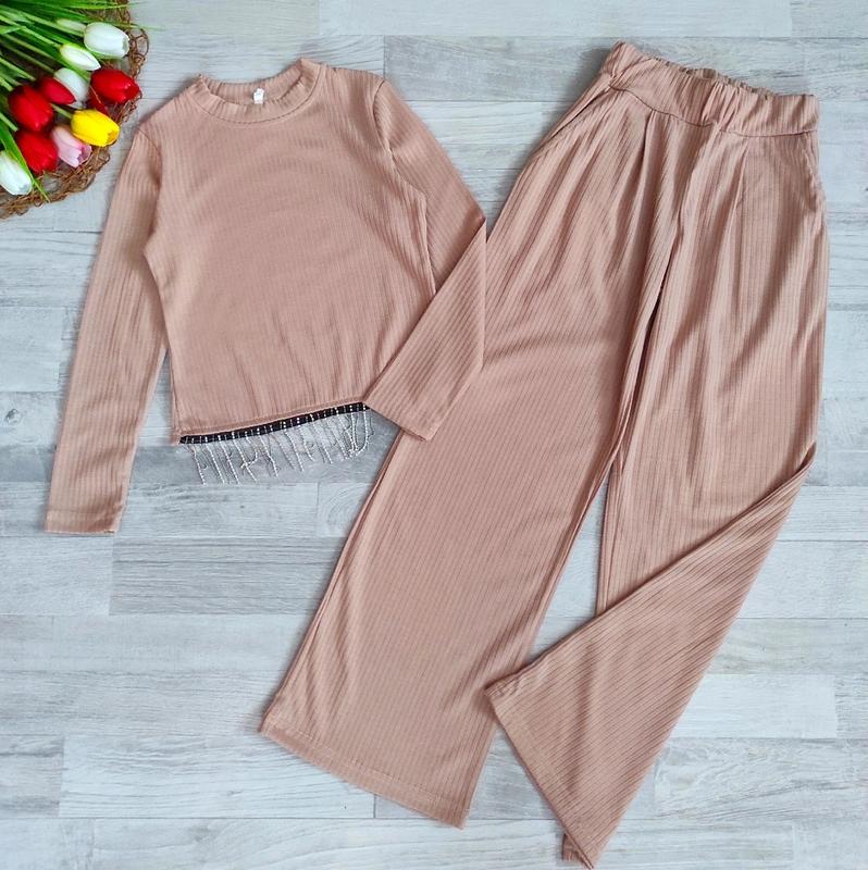 Шикарний костюмчик двійка тканина рубчик в штанах широка резиночка в поясі,є кишеньки заміри:довжина/рукав/пог/штани довжина/крок/пояс 134-39/43/30/85/60/26 152-45/50/35/90/66/29 158-48/53/37/92/68/30 +-2см