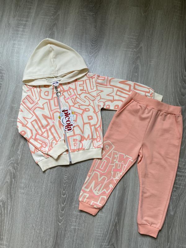 Заміри: • 3-4 р.: СВІТШОТ - довжина по спинці 37; ПОГ 32; рукав від плеча 28. ШТАНИ - довжина 49; крок 31; талія (резинка тягнеться) 44. • 5-6 р.: СВІТШОТ - довжина по спинці 42; ПОГ 34; рукав від плеча 32. ШТАНИ - довжина 59 ; крок 38; талія (резинка тягнеться) 46.