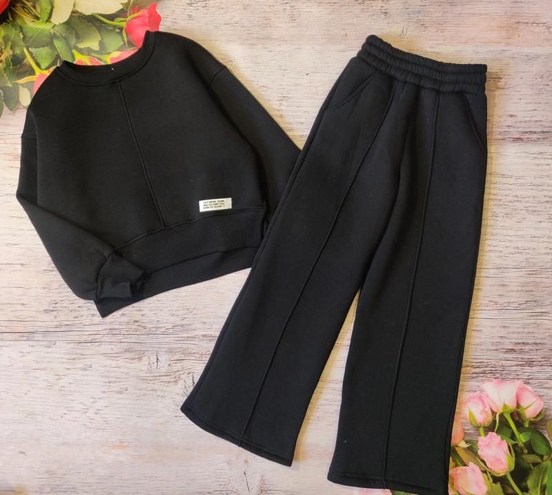 ток Новинка🖤🖤🖤 Дуже стильний костюмчик з елементами рібани Тканина турецька тринитка піньє заміри довжина кофти/ пог/ рукав від горловини/ довжина штанів/крок/ пояс 134-46/46/57/81/58/25 140-48/47/60/85/61/27 146-49/49/62/88/64/28