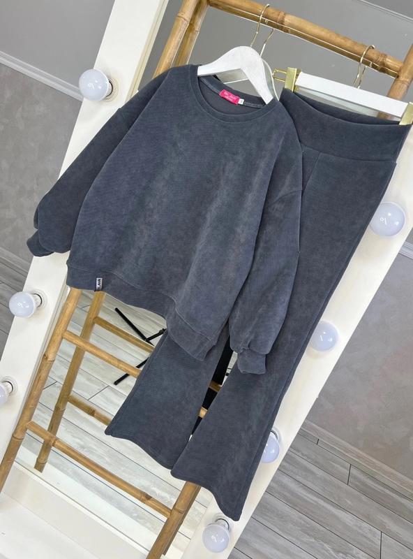 Арт 4169 НОВИНКА весни 2024року🔥 Підлітковий костюм для найстильніших дівчат, дуже ніжний на дотик, тканина стрейчевий вельвет -рубчик , Стильний комфорт на кожний день завжди актуальний . Цей костюм буде знахідкою для стильних аутів. Подовжена кофта овер крою, штани кльош зріст/довжина/пог/рукав від горловини/довж.штанів/крок/пот/поб похибка+-2см 140/52/50/57/90/64/24/30-2шт 146/55/52/60/93/67/26/31-2шт 152/59/53/63/95/69/27/33-2шт 158/62/54/67/99/71/29/35-1шт 164/64/55/70/102/73/31/38-2шт Тан