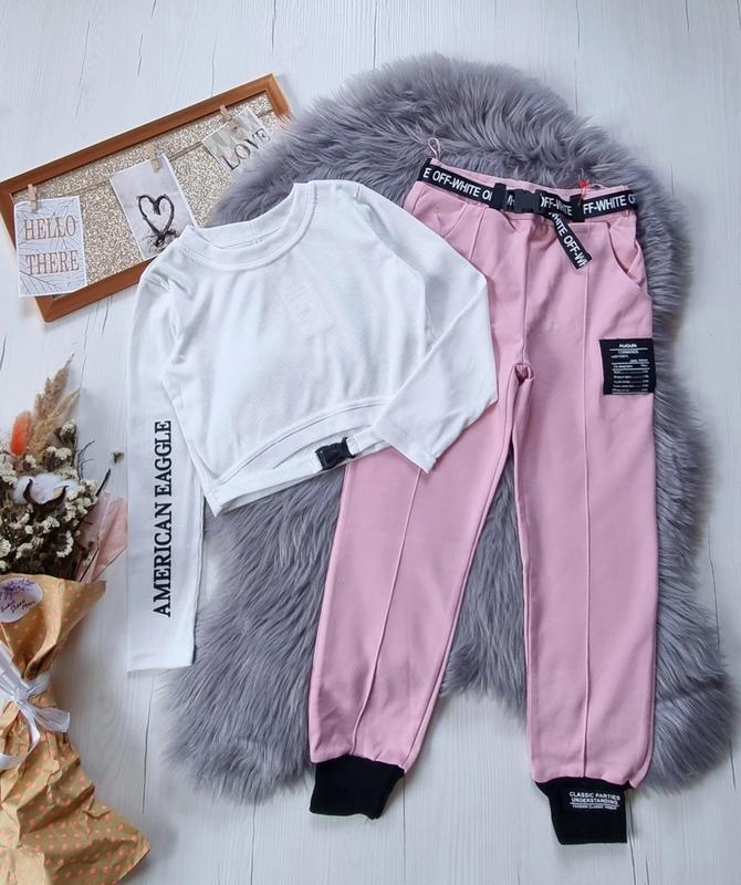 Модний і стильний лук топ+джогери топ- мустанг рубчик,джогери алекс Реомендую! 152(1 шт )-довжина топа 44,пог 40,рукав 52,довжина штанів 88,крок 63,пот 33,поб 43