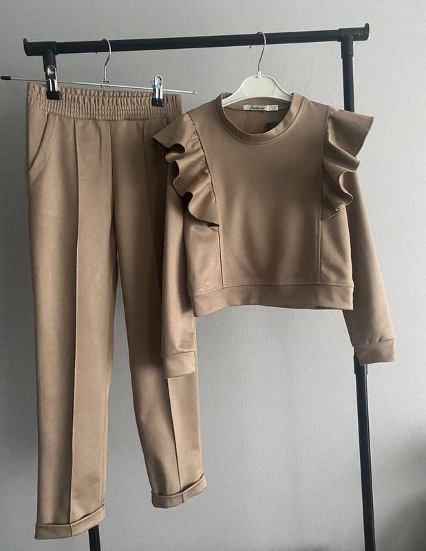 БЕЗДОГАННА ЯКІСТЬ! тканина: замш діагональ (стрейч) ВИМІРИ: р. 122 довж кофти/рукав/пог 38/46/37 довжина брюк/шаг/стегно/пояс 79/57/36/26,5см р. 128 довж кофти/рукав/пог 39/50/38 довжина брюк/шаг/стегно/пояс 80/57/37,5/27,5см р. 134 довж кофти/рукав/пог 42/52/40 довжина брюк/шаг/стегно/пояс 84/61/38,5/28см р.140 довж кофти/рукав/пог 45/54/43 довжина брюк/шаг/стегно/пояс 87/63/39/29см ВЛАСНЕ ВИРОБНИЦТВО!!!