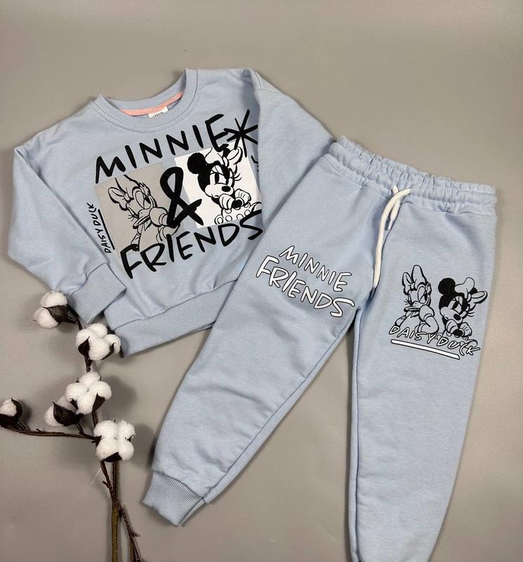 🩵Костюмчики из Minnie голубого цвета Тканина трьохнитка ⚡️Размеры: ▪️4-5 года (110 см): Кофта: длина 41 см, рукав от горловины 42 см, пог 40 см. Брюки : длина 63 см, крок 45 см, пот 30 см, на резинке, регулируются шнурком. ▪️5-6 лет (116 см): Кофта: длина 44 см, рукав от горловины 44 см, пог 41 см. Брюки : длина 68 см, крок 48 см, пот 31 см, на резинке, регулируются шнурком. ▪️7-8роков (128см): Кофта: длина 46 см, рукав от горловины 46 см, пог 44 см. Брюки : длина 72 см, крок 55 см, пот 33 см, на резинке, регулируются шнурком.