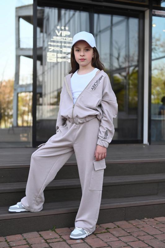 💝Підлітковий костюм з карго для дівчаток 🏷Розміри: 140-170 🪡Натуральна тканина пеньє - двонитка класу люкс (95% бавовна, 5 еластан) турецького виробника, не линяє, не кошлатиться, зносостійка. Високої якості пошив. Колір: чорний, сірий, бежевий Принт: шовкографія