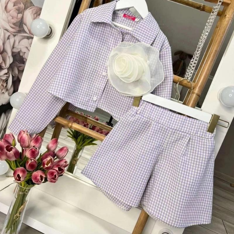 Тканина поплін Укорочена сорочка з комірцем на гудзиках, прикрашена трендовою брошкою з квіткою шорти гарно сідають по фігурі, пояс на широкій резиночці розміри 140-1шт. немає синього, 1 фото 146-1шт 152-1шт. немає рожевого, 1 фото 158-1шт 164-1шт. немає синього kids. 👝