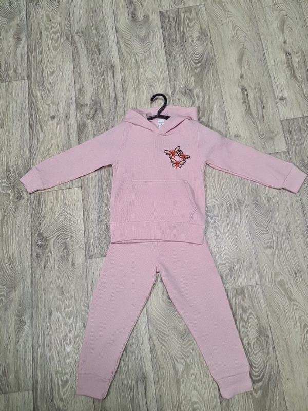 Костюм для дівчаток у блідо рожевому кольорі . Виробництво Туреччина. З аплікацією метелики. Тканина бавовна вафля.