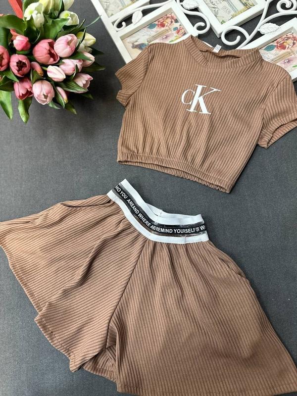 Новинка " CK" Топ+ шорти- спідницярубчик. Дорожня резинка. На замовлення 1-7 днів Заміри: Пояс - полуобх. в розтяг.вигляді 98см-топ довж.23см ;пог 28см;рукав 8см;/шорти довж 27см;пот 26см 104см-топ довж.25см ;пог 29см;рукав 8,5см;/шорти довж 28см;пот 27см 110см-топ довж.27см ;пог 29,5см;рукав 8,5см;/шорти довж 28,5см;пот 28,5см 116см-топ довж.28см ;пог 30см;рукав 9см;/шорти довж 29см;пот 30см 122см-топ довж.29см ;пог 31см;рукав 9,5см;/шорти довж 31см;пот 31см 128см-топ довж.30см ;пог 31,5см;рукав 9,5см;/шорти довж 32см;пот 32см 134см-топ довж.32см ;пог 32см;рукав 9,5см;/шорти довж 33см;пот 33см 140см-топ довж.33см ;пог 33см;рукав 10см;/шорти довж 34см;пот 34см 146см-топ довж.34см ;пог 35см;рукав 11см;/шорти довж 35см;пот 35см 152см-топ довж.35см ;пог 36см;рукав 11,5см;/шорти довж 36см;пот 36см 158см-топ довж.36см ;пог 38см;рукав 12см;/шорти довж 37см;пот 37см 164см-топ довж.37,5см ;пог 39см;рукав 12,5см;/шорти довж 38см;пот 38см Потрібний розмір пишемо у коментарях УВАГА! Через велику кількість замовлень інформація про точну наявність трохи відрізняється. Наявність уточуваним по телефону ********** В інтернет-магазині "навіть у наявності нові моделі одягу від різних виробників. Якісні натуральні матеріали, універсальні та практичні фасони, різноманітні забарвлення й варіанти виконання дають вибір дівчатам, дітям і чоловікам. Купити гуртом Дитячий костюм в інтернет-магазині за низькими цінами від виробника Ви можете прямо зараз натиснувши на кнопку "купити".