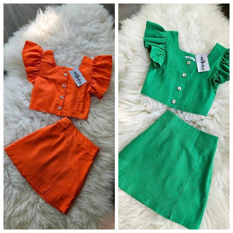 Дуже класний костюм, топ та спіднця,, натуральна тканина, легенька дуже схожа на льон Помаранчевий 134 152 158 Зелений 152 158 Виробник Украина