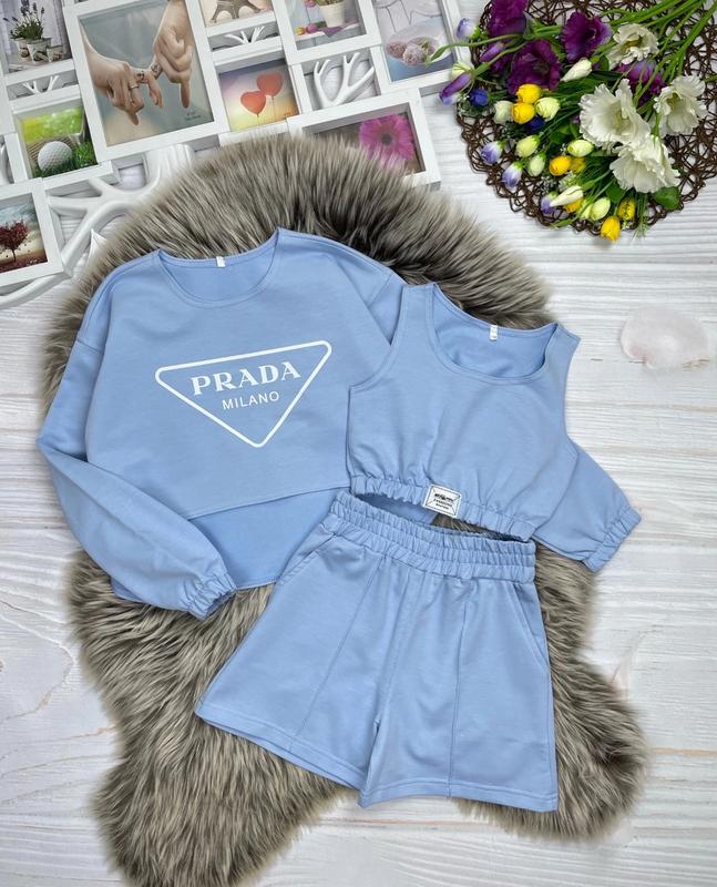 Стильний костюм трійка для красунь 💗 тканина турецька двухнитка піньє 🔥 якісний накат ПОВНОМІР ЗАМІРИ: довжина шорти/пояс. довжина топ/пог. довжина кофта спереду/довж позаду/пог/рукав від горловини 134 - 31/26/. 27/29/. 32/42/43/57 140 - 33/27/. 29/30/. 35/44/43/59 146 - 34/27/. 31/31/. 35/46/45/61
