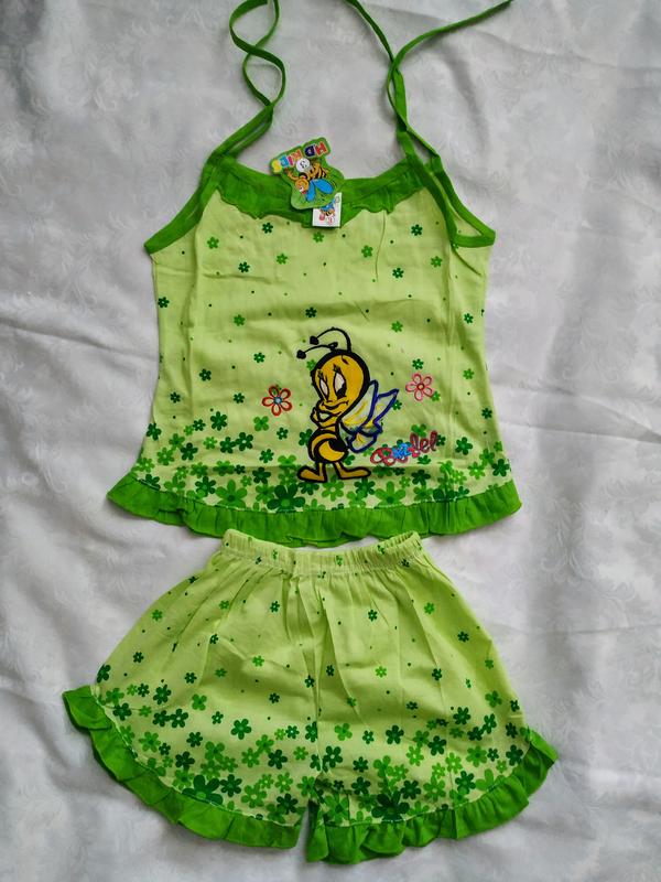 Костюм літній для дівчинки, дуже приємний на дотик, 100% бавовна.Орієнтуємось по замірах. Заміри присутні+ см додаємо на зав'язки. Завітайте на сторінку-є вибір.