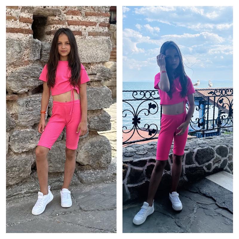 Комплект велосипедки та футболка з затяжкою - трикотаж мустанг ПОВНОМІРНІ! Розміри в наявності: 110см. 2шт 116см. 2шт 122см. 2шт 128см. 2шт Ціна: 430 грн Заміри: допустима похибка (+-) 2см. БІЛЬШОМІРЯТЬ!!!! Топ: довжина,ширина. Велосипедки: довжина,крок,бедра,пояс 110см. 26/29/35/20/26/23 116см. 27/30/37/21/27/23 122см. 28/31/39/23/28/24 128см. 30/32/40/24/29/24