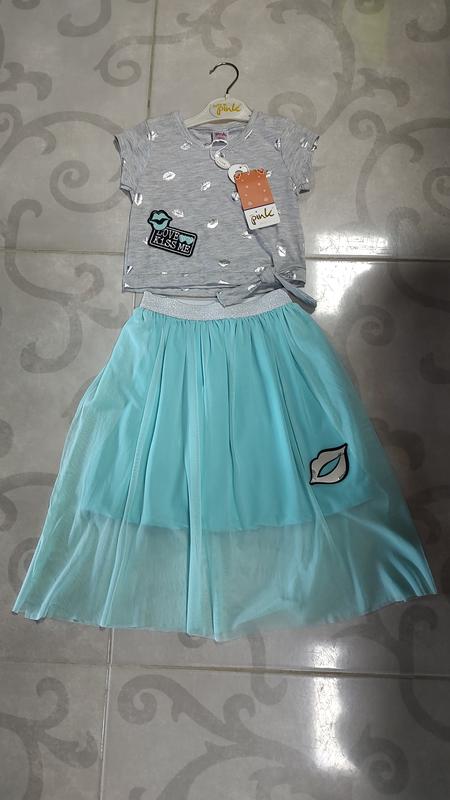 Набір для дівчинки 4-5 років (110 ріст) топ (довжина 31 см, ширина 28 см) та фатінова подовжена спідничка на резинці (довжина 48 см, пояс 25 см), виробництва Туреччина