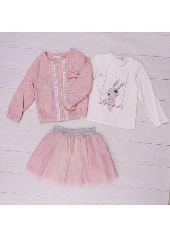 Дуже гарний та милий костюм 3ка для дівчинки. До комплекту входить:кофта на змійці,реглан та спідничка з фатину. Костюм в приємномц ніжному пудровому кольорі. Кожна річ з костюму може одягатись окремо. Відмінна якість та приємна ціна.