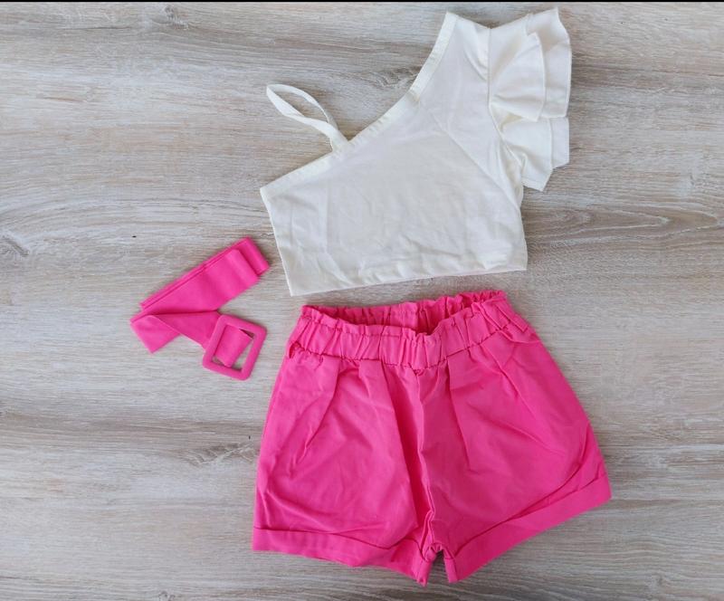 топ стрейч коттон ,тягнеться шорти коттон ,пояс на резинці ремінь в комплекті ЗАМІРИ топ (довжина /ширина) шорти (довжина / пояс(тягнеться +8-9см) ) ✅4р топ ( 26/27) ш. (25/22) ✅5р топ ( 27/28) ш. (26/23) ✅6р топ ( 29/30) ш. (28/24) ✅7р топ ( 31/32) ш. (29/25) кидсбейбишоп похибка +-1см НАЯВНІСТЬ 4р 5шт 5р 5шт 6р 5шт 7р 5шт