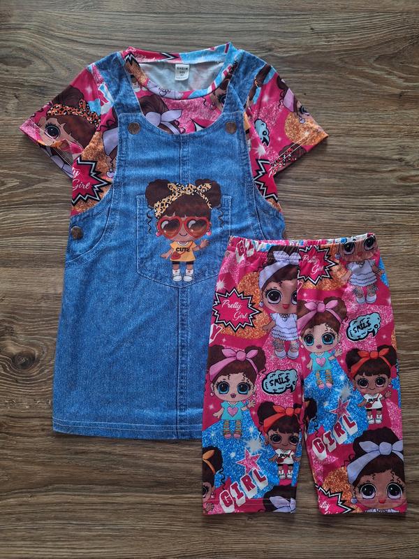 Класний яскравий комплект, який складається з сукні та велосипедок. Розмір 4 роки. Сукня: ПОГ - 34 см ПОБ - 37 см Довжина - 56 см Велосипедки: ПОТ - 21-27 см ПОБ - 30- 34 см Довжина - 38 см Кроковий - 19 см Стан нової речі, без етикетки.