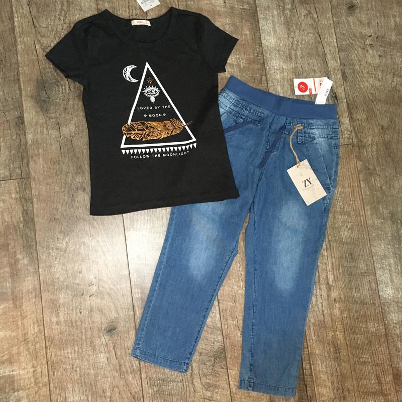 Набір на дівчинку 4/5р. Все нове. Футболка - довжина 47. Штани тонкі 100% котон - довжина 69 крок 46 пояс 28(є утяжка).