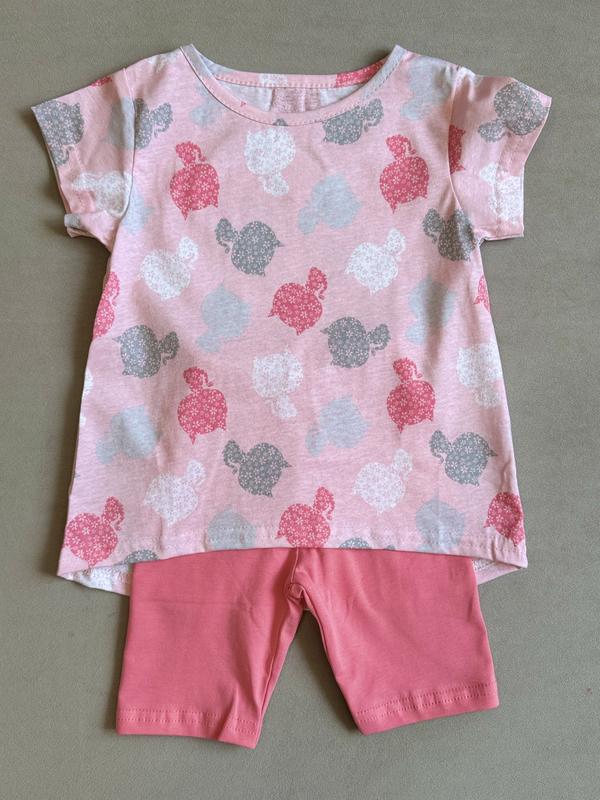 Бавовна 95% Заміри📐: ❌86/92см (1,5-2роки): футболка: ширина - 30см; довжина-39см; довжина по спинці -42см; шорти: ширина стегон-24см; довжина-28см; ❌98-104см (3-4роки): футболка: ширина - 32см; довжина-42см; довжина по спинці -45см; шорти: ширина стегон-27см; довжина-32см ❌110-116см (5-6років): футболка: ширина - 34см; довжина-45см; довжина по спинці -49см; шорти: ширина стегон-29см; довжина-36см; 122-128см (7-8років): футболка: ширина - 36см; довжина-48см; довжина по спинці -52см; шорти: ширина стегон-32см; довжина-40см Відправка Новою Поштою або Укрпоштою Оплата на карту або безпечною оплатою від шафи