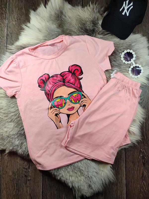 Красиві та зручні 💕 В наявності Ціна зі знижкою 275 грн Заміри Футболка ширина 34 , довжина 50 см Шорти резинка 25, довжина 32 см Підійде на 7-8 років Кольори Чорний Рожевий Молочний