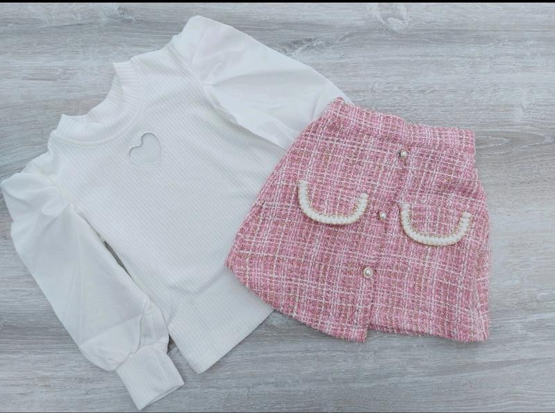 🌹неймовірно гарний костюм 🌹 кофта рубчик , тягнеться / рукава котон спідничка твід , ззаду на резинці бейбикідшо ЗАМІРИ блуза (довжина /ширина по грудях /рукав від плеча ) спідничка (довжина по коротшій стороні /пояс (тягнеться +6-7см) ) ✅100р к. (34/28/35) с. (30\22) ✅110р к. (38/29/37) с. (33\23) ✅120р к. (40/31/39) с. (35\24) ✅130р к. (43/32/41) с. (37\25) похибка +-1см НАЯВНІСТЬ 100р 15шт 110р 10шт 120р 5шт 130р 1шт