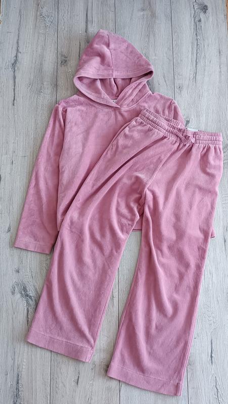 р.9/10 Штани:довж.79 см.вн.ш 54 см.пояс резинка півообхват 29 см.+ тягнеться до 39 см.,є шнурки стягувати. Кофта:рукав від шва 46 см.від шиї 54 см.довжина 45 см.під руками півообхват 43 см