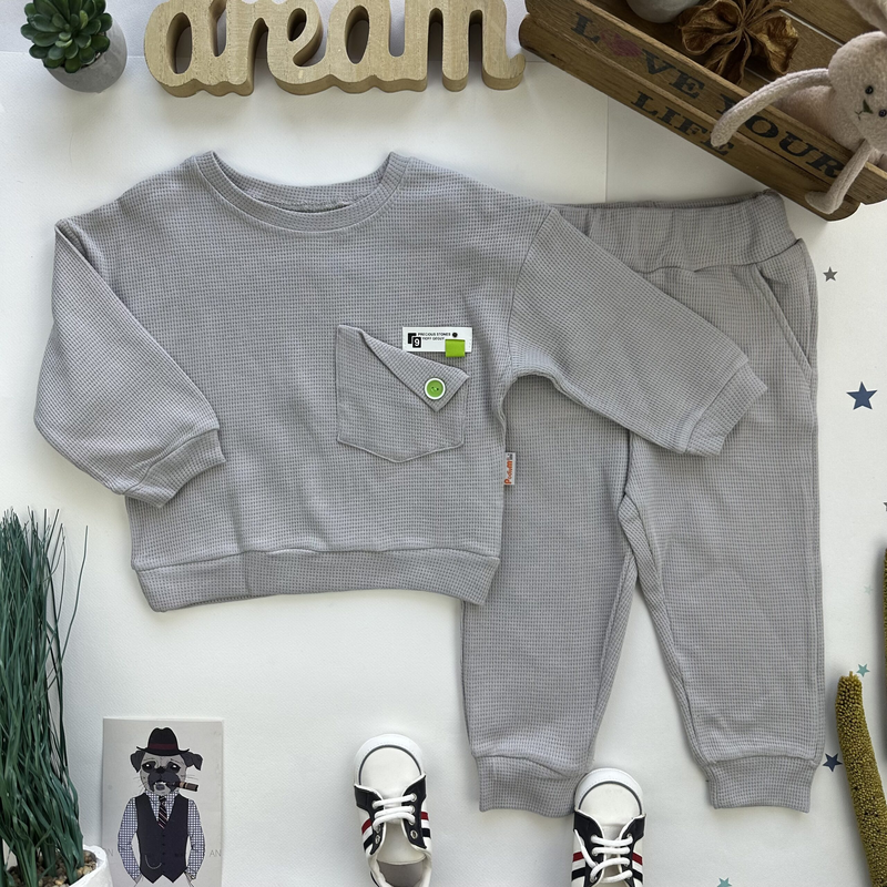 Костюм – виробництва Туреччина. Тканина вафелька ( трикотаж). Якість – Люкс!!! Штани з кишенями, манжетами знизу. Реглан з приспущеним рукавом, з кишенькою. Розміри: 92- по бірці 2 – рукав 37, довжина 34, штани 50, крок 29 98- по бірці 3 – 39/ 37/ 53/ 31 104- по бірці 4 – 43/ 38/ 54/ 34 110- по бірці 5 – 44/ 41/ 59/ 37 *замір рукава від горловини