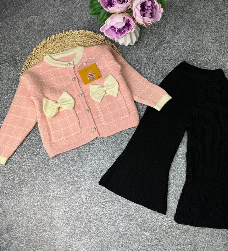 Стильний костюм для дівчинки кофточка нарядна + штанці тканина плотна машинна в‘язка