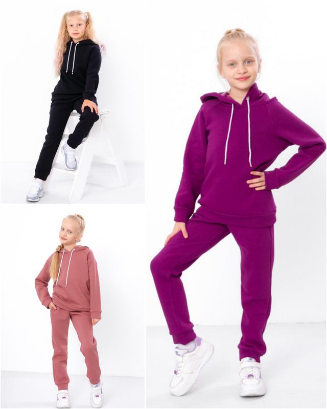 Теплий зимовий костюм на флісі для дівчаток тринитка, щільний утеплений костюм дитячий на...