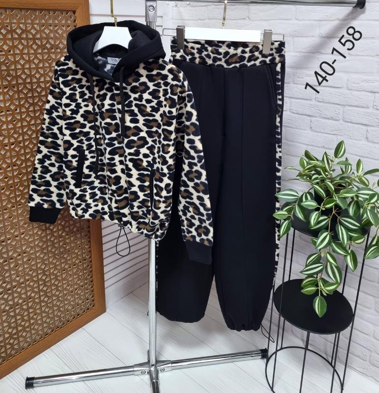♥ХІТ СЕЗОНУ Модний костюмчик з принтом лео штани турецька тринитка пенье,худі -фліс,має капюшон ,та бокові кишені штани з лампасами під резинку,низ на утяжці Стійкий до КАТОШКІВ Гарна якість 📍140-довжина сорочки 48,пог 43,рукав від горловини 59,довжина штанів 88,крок 64,пояс 28,поб 40 📍146-довжина сорочки 50,пог 46,рукав від горловини 61,довжина штанів 90,крок 66,пояс 30,поб 43 📍152-довжина сорочки 52,пог 47,рукав від горловини 63,довжина штанів 90,крок 66,пояс 31,поб 45 📍158-довжина сорочки 55,пог 48,рукав від горловини 67,довжина штанів 97,крок 72,пояс 32,поб 47 +-2 см